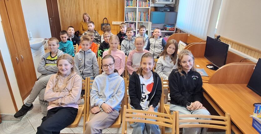 Dnia 30 października 2025 r. uczniowie klasy IV ze Szkoły Podstawowej w Jasionowie wraz z Panią D. Filak odwiedzili Gminną Bibliotekę Publiczną. Celem wizyty było poznanie pracy biblioteki i zasad korzystania z jej zbiorów.