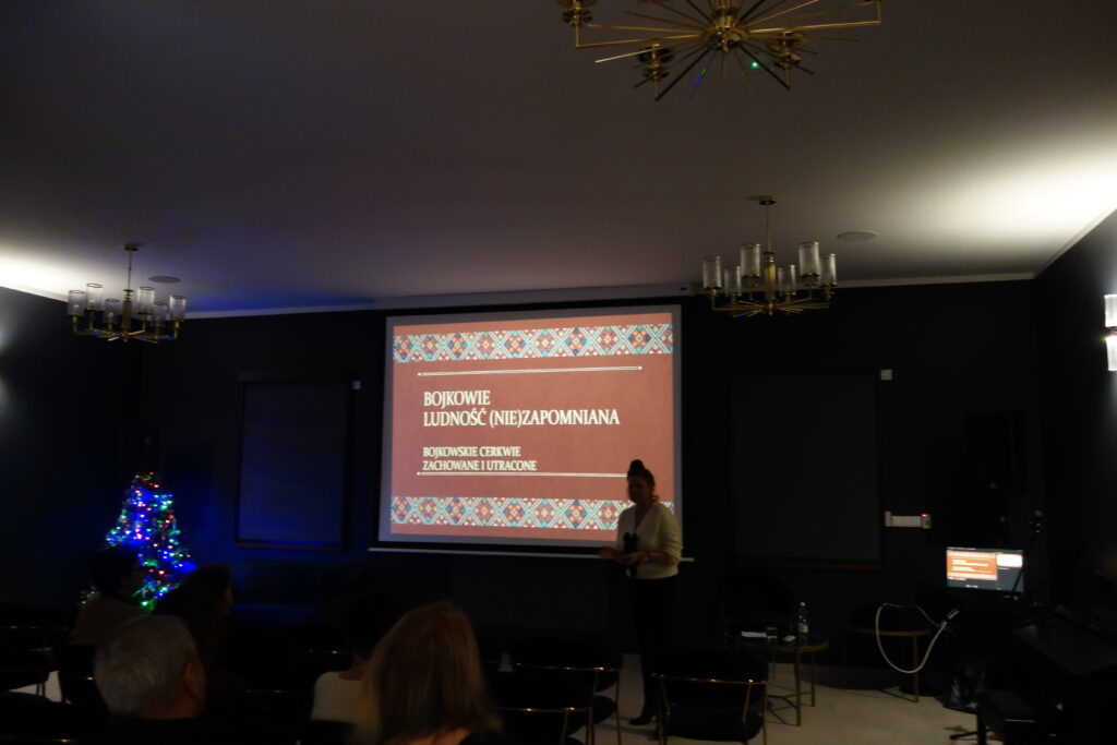 Druga część spotkania, „Bojkowskie cerkwie zachowane i utracone”, poświęcona była sakralnej architekturze Bojków. Prelegentka zaprezentowała zarówno cerkwie, które przetrwały do naszych czasów, jak i te, które zostały zniszczone lub bezpowrotnie utracone. Bogato ilustrowana prezentacja ukazała piękno drewnianej architektury cerkiewnej oraz jej znaczenie jako ważnego elementu tożsamości kulturowej Bojków. Opowieści o losach poszczególnych świątyń wywołały duże poruszenie wśród słuchaczy.